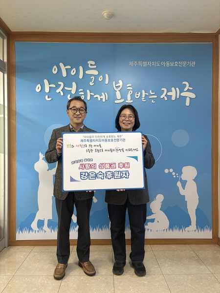 강은숙 후원자는 지난 23일 제주특별자치도아동보호전문기관(관장 정원철)을 방문해 1년간 차곡차곡 모은 상품권 1,000,000원을 전달했다.