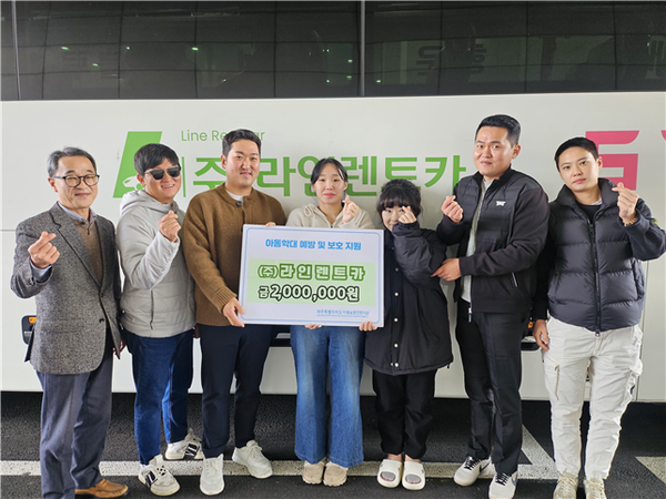 ㈜라인렌트카(대표 박재구)는 지난 29일 제주특별자치도아동보호전문기관(관장 정원철)에 도내 학대피해아동의 건강한 성장과 정서 회복을 지원하기 위한 후원금 200만원을 전달했다.