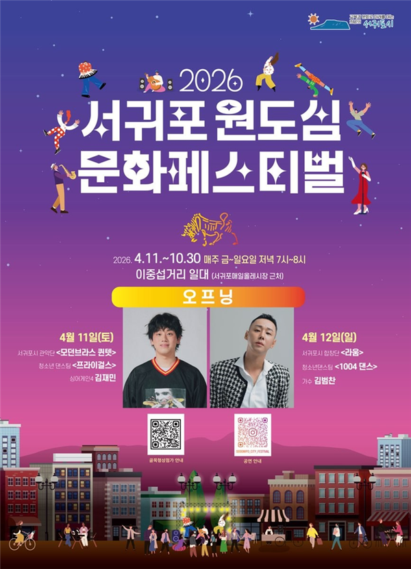 서귀포시 관계자는 “서귀포 원도심 활성화를 위한 행사인 만큼, 이번 개막 특별공연을 시작으로 10월까지 매주 금·토·일 열리는 모든 행사에 많은 분들이 참여해 함께 즐기길 바란다”라고 전했다.