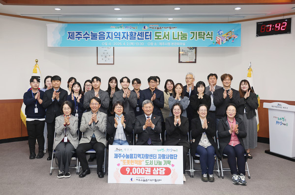 제주시는 4월 2일(목) 시청 본관 회의실에서 제주수눌음지역자활센터에 도서 9천여 권을 전달하는 ‘도서 나눔 기탁식’을 개최했다.