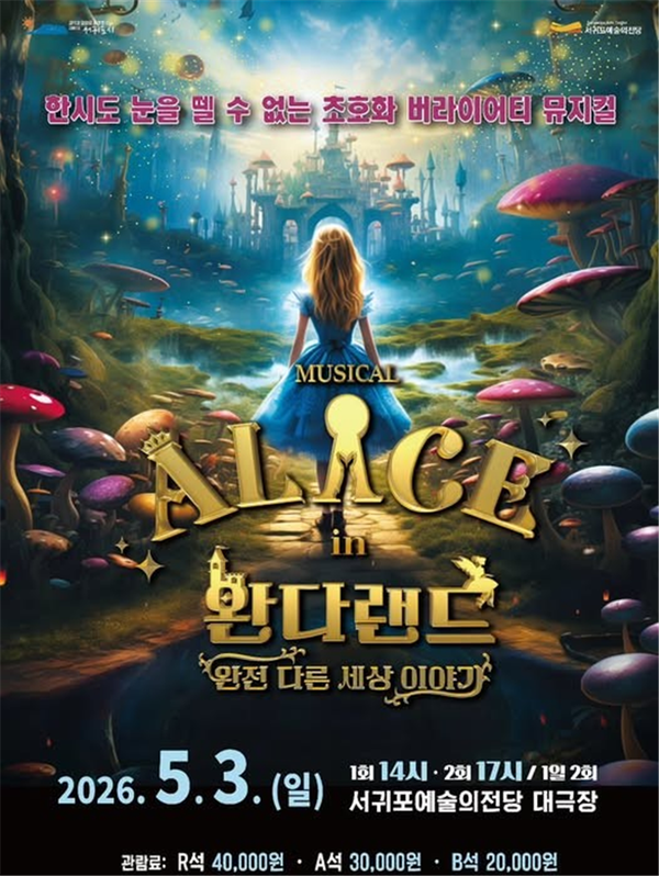 서귀포예술의전당은 5월 가정의 달을 맞아 뮤지컬 「이상한 나라의 앨리스: 완다랜드」를 오는 5월 3일(일) 오후 2시와 5시, 총 2회에 걸쳐 서귀포예술의전당 대극장에서 선보인다.